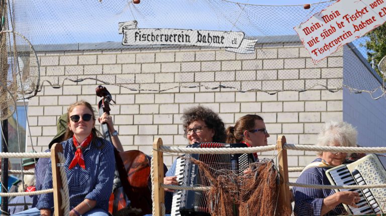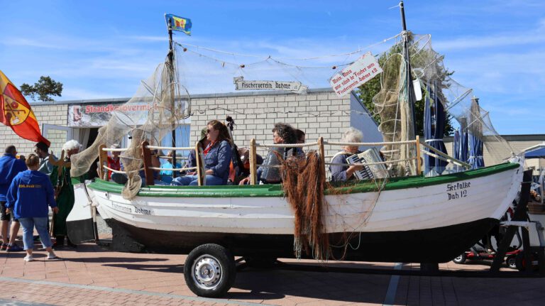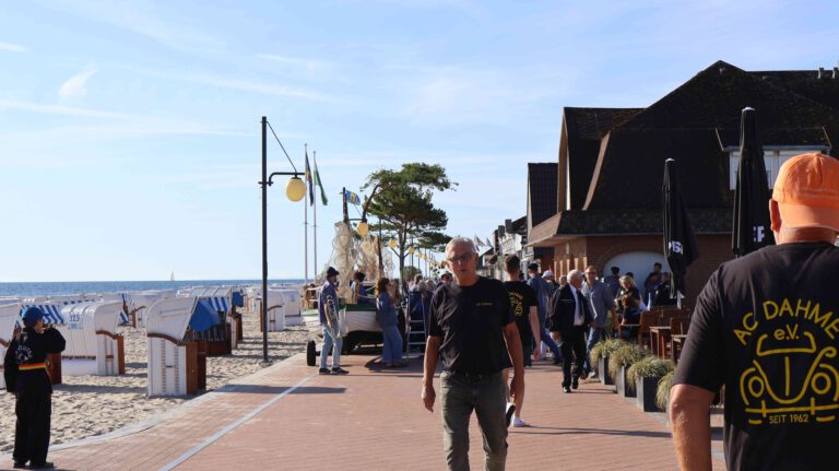 Dass der Fischerbudentreff nicht nur Nostalgie, sondern auch lebendige Gegenwart ist, zeigte die Unterstützung zahlreicher Vereine und Institutionen. Der Tourismus-Service und die Gemeinde übernahmen gemeinsam die Kosten für die Musik, um die Vereinskasse zu entlasten. Außerdem überreichten Feuerwehr, TSV Dahme, Heimat- und Kulturverein, DLRG, Strand Spa, CDU, die „Partei für Dahme“, der Dachverband für Teikojutsu und der Gewerbeverein eine Spende von insgesamt 900 Euro.