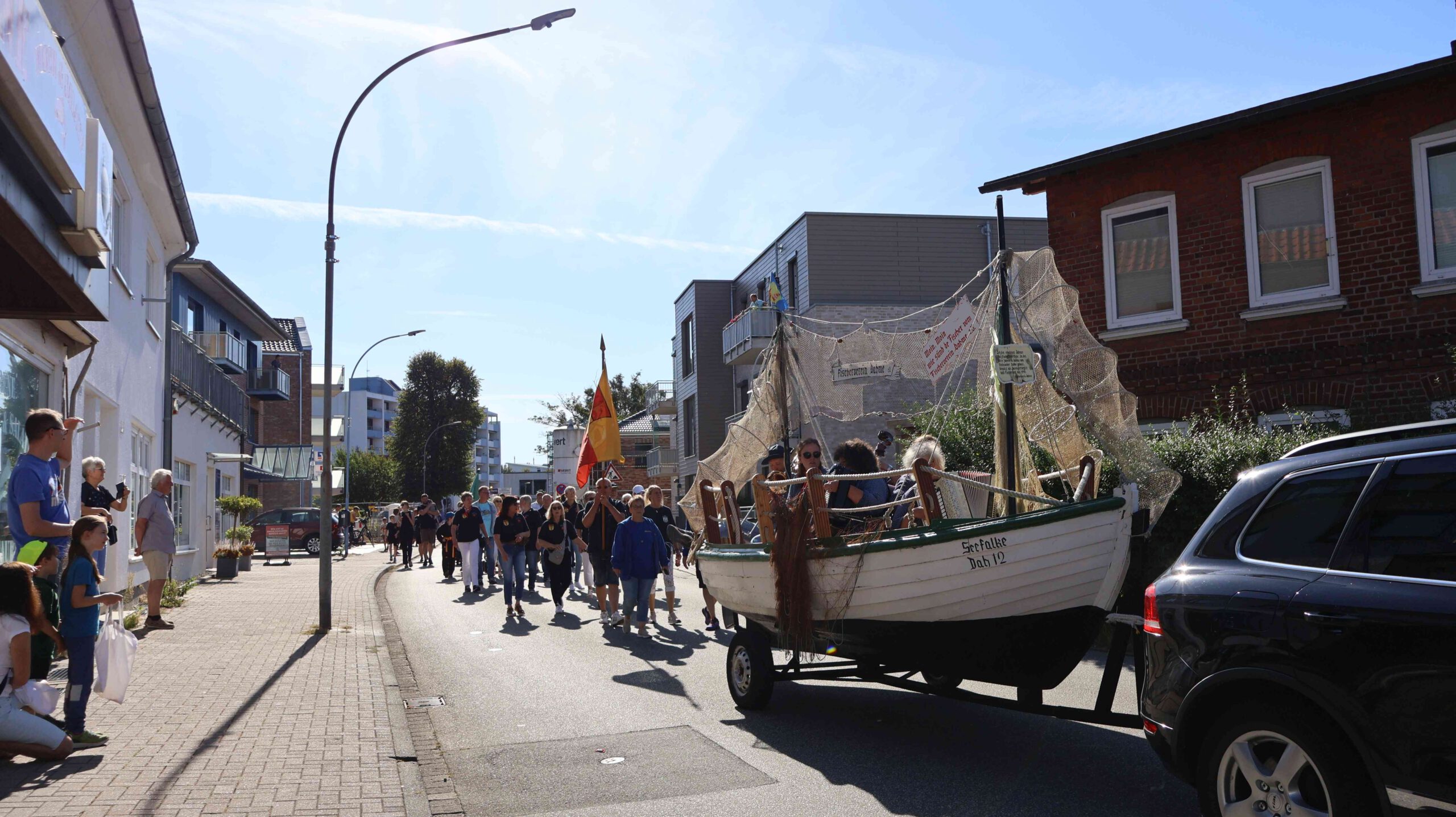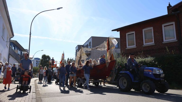 Dahme. Die Sonne schien, eine leichte Ostseebrise wehte, als sich am Sonntag Neptun mit seinen Nixen, Fischer und Fahnenträger, Gäste und Einheimische zum Festumzug durch das Ostseebad Dahme aufmachten. Ziel: der Fischerbudentreff an der Fischerhütte. Seit 40 Jahren markiert das spätsommerliche Treffen einen Höhepunkt im Jahreslauf des Ostseebades. Und auch diesmal wurde mit Feierstunde, Musik der Vogelberg-Kapelle und viel Geselligkeit im Festzelt, an Strand und Promenade wieder groß gefeiert.