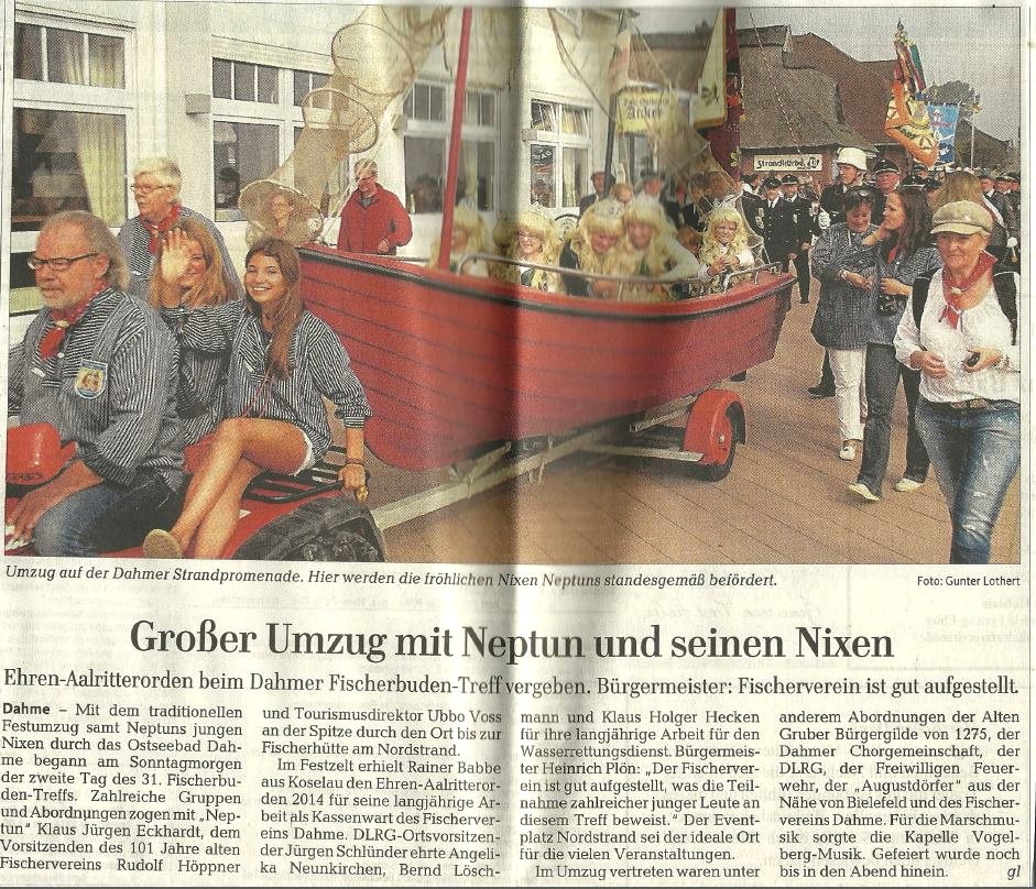 Am Nystedplatz begrüßt NEPTUN, Herrscher über Flüsse, Seen, Bäche und Moraste mit seinen NIXEN das Landvolk in